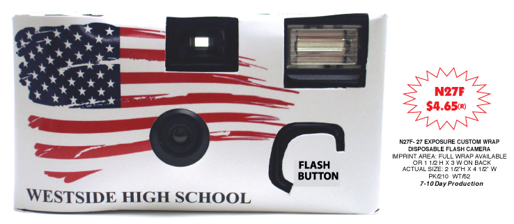 N27F - 27 EXP. CUSTOM WRAP DISPOSABLE FLASH CAMERA (7-10 DAY PRODUCTION REQUIRED)